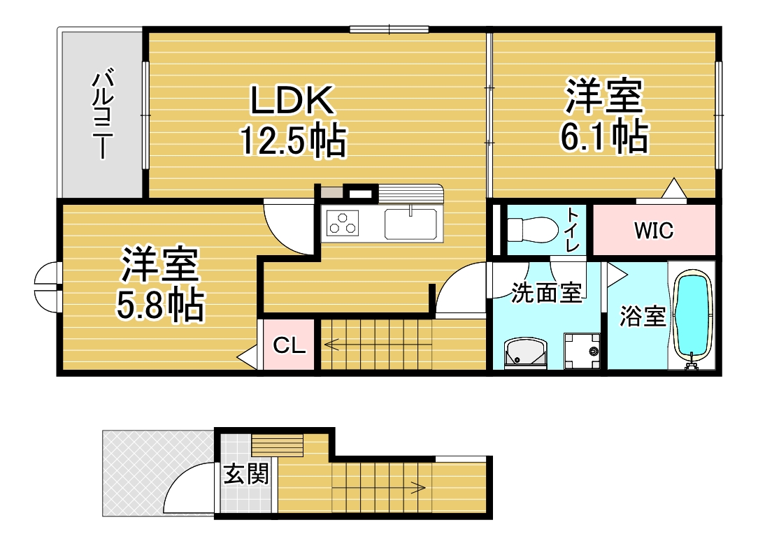 間取り詳細 洋6.1×洋5.8×LDK12.5