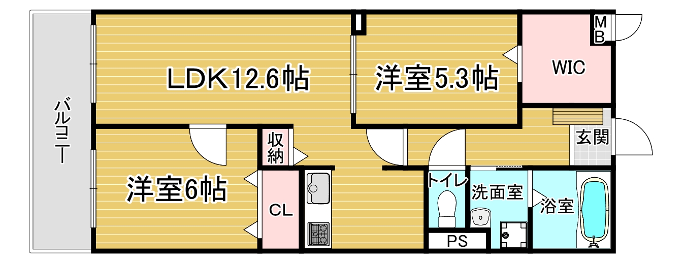 間取り詳細 洋6×洋5.3×LDK12.6