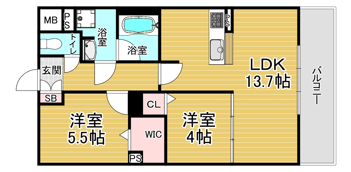 間取り詳細 洋5.5×洋4×LDK13.7