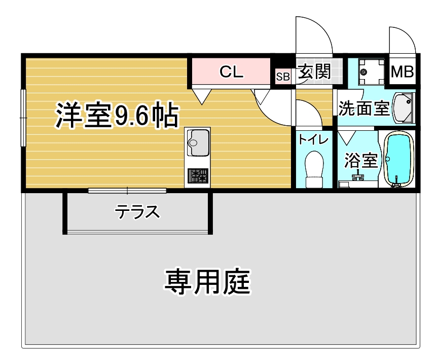 設備 エアコン/TVモニターホン/角部屋/フローリング/専用庭/自転車/バス・トイレ洗面別/シャワー/シャンプー・ドレッサー付洗面台/浴室乾燥機/室内洗濯機置場/ペット可能/インターネット高速回線/ガス(都市)/エレベータ/オートロック/宅配ボックス/ネット代込/二口ガスコンロ付き/