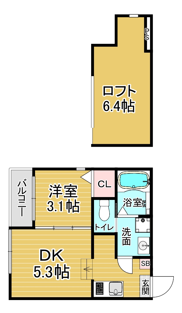 間取り詳細 洋3.1×DK5.3×ロフト6.4