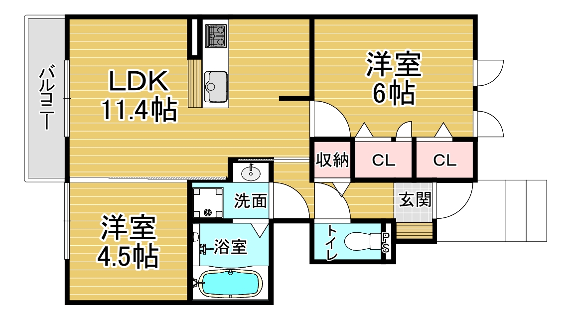 間取り詳細 洋6×洋4.5×LDK11.4