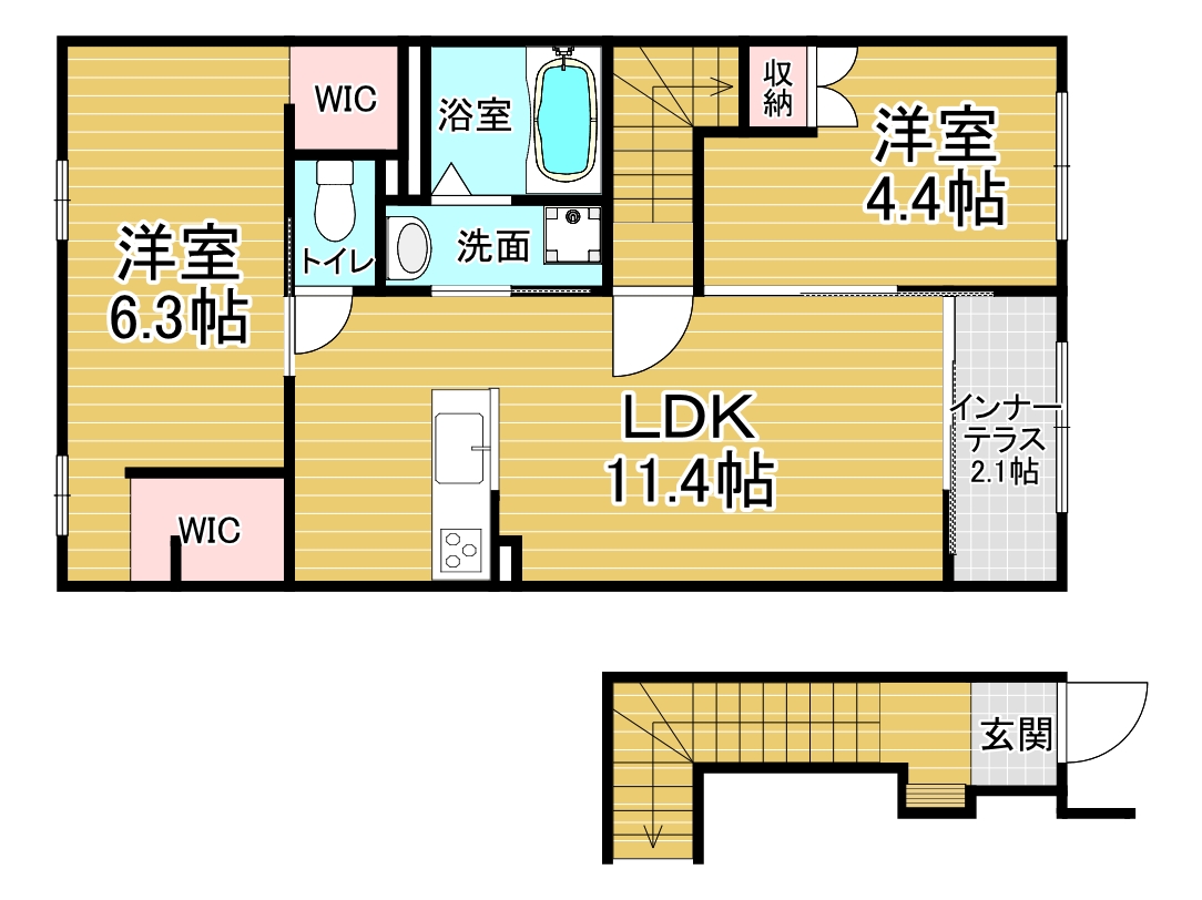 間取り詳細 洋6.3×洋4.4×LDK11.4