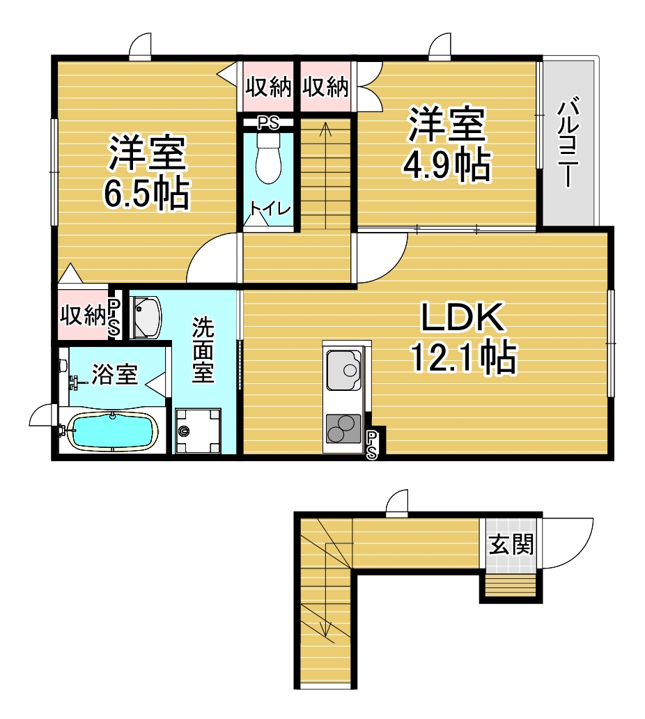 間取り詳細 洋6.5×洋4.9×LDK12.1