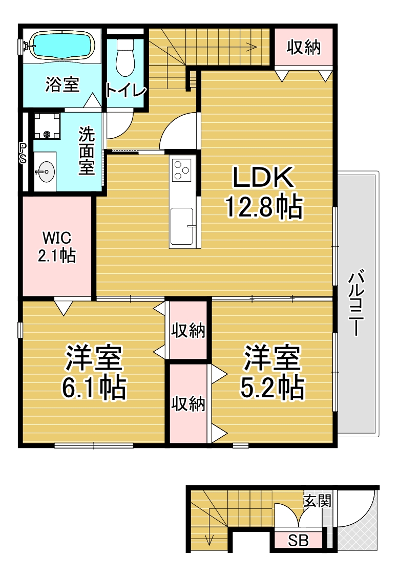 間取り詳細 洋6.1×洋5.2×LDK12.7