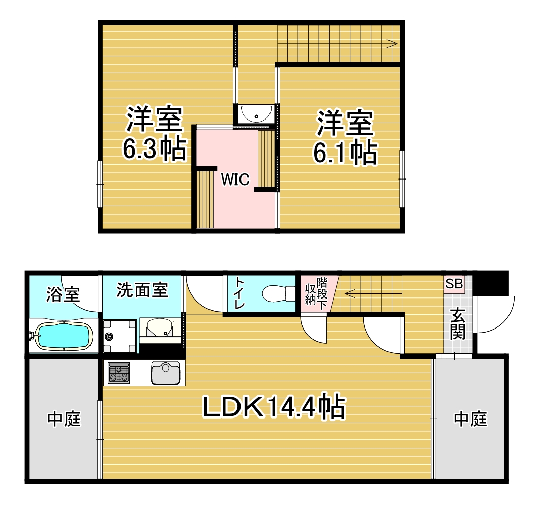間取り詳細 洋6.3×洋6.1×LDK14.4