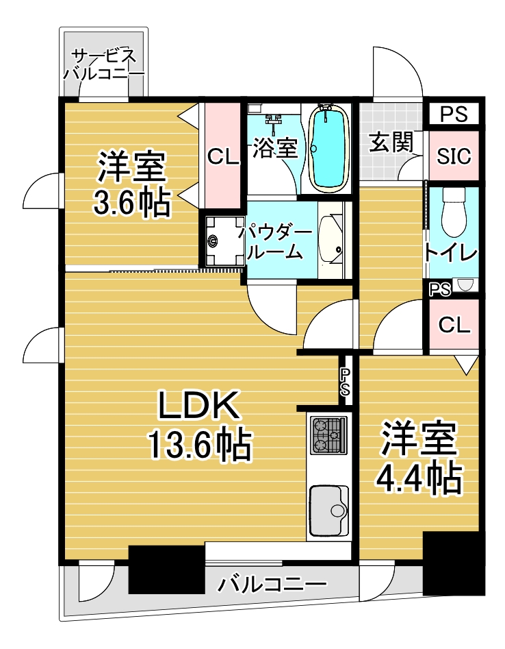 間取り詳細 洋4.4×洋3.6×LDK13.6