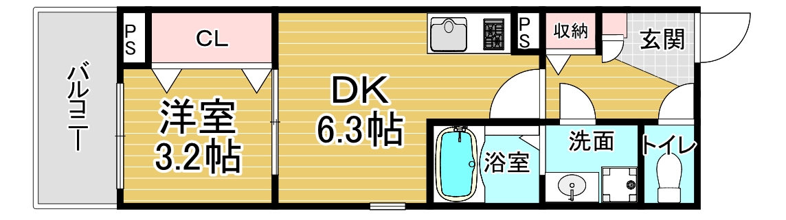 間取り詳細 洋3.2×DK6.3