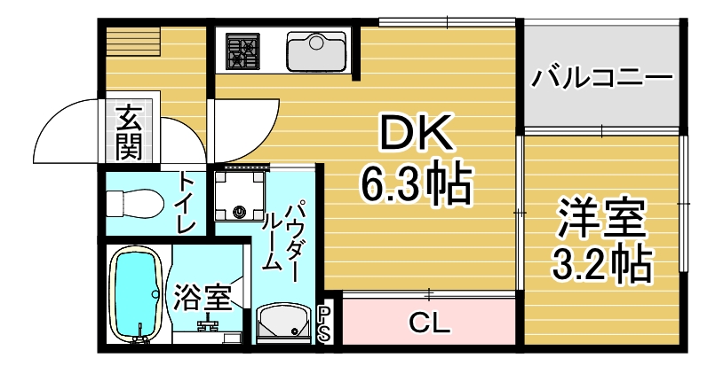 間取り詳細 洋3.2×DK6.3